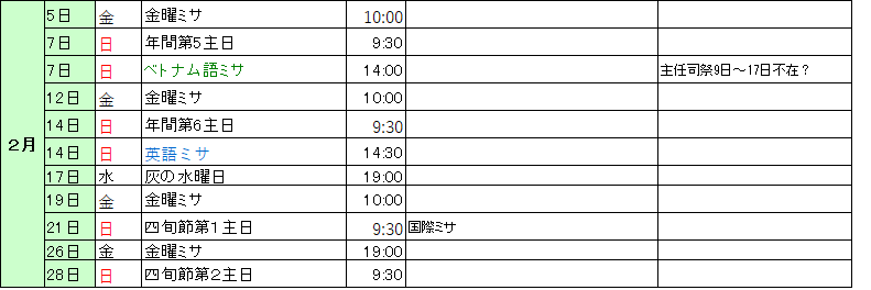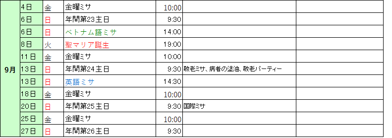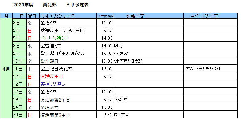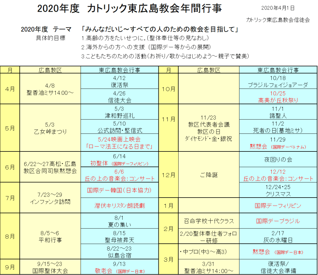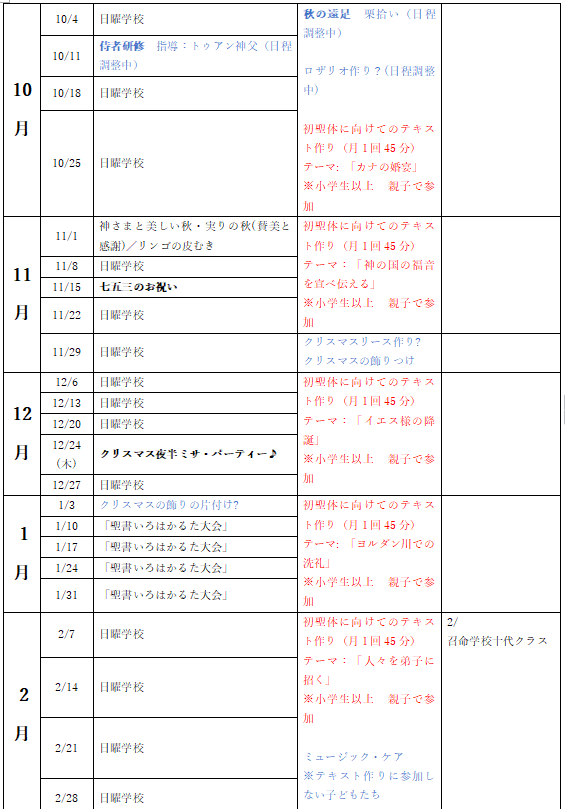行事案内2020 行事案内2019 教会行事【2020年 年間行事計画】 典礼行事【2020年度 典礼部 ミサ予定表】 ともいく(日曜学校)【2020年度 日曜学校年間計画】 共有: クリックして X で共有 (新しいウィンドウで開きます) X Facebook で共有するにはクリックしてください (新しいウィンドウで開きます) Facebook いいね 読み込み中…